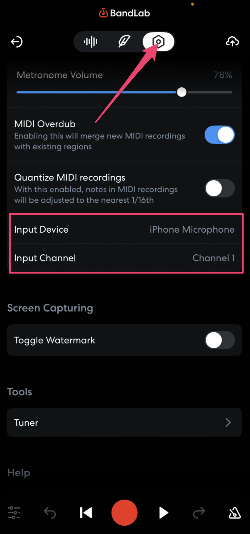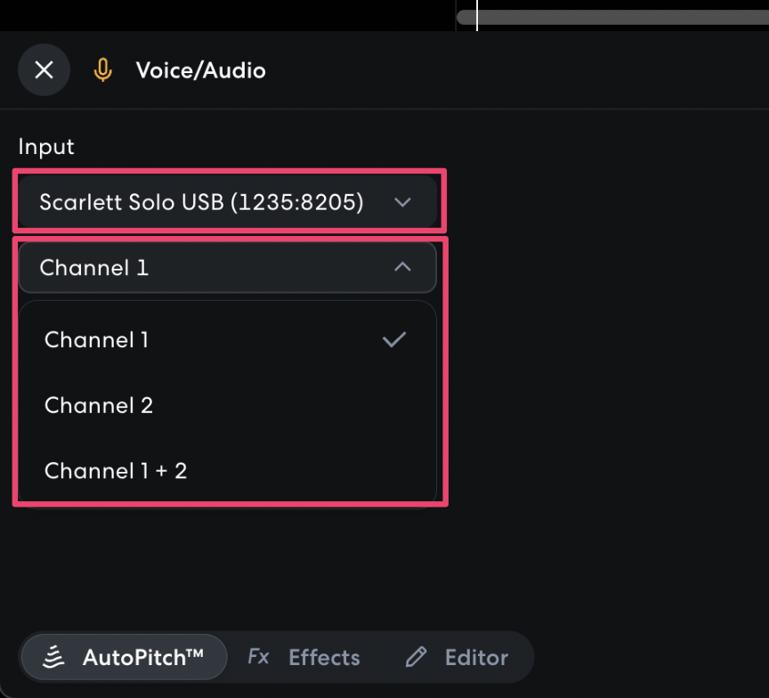 - Add a Voice/Audio, Guitar, or Bass track, and select your Input Device and Input Channel