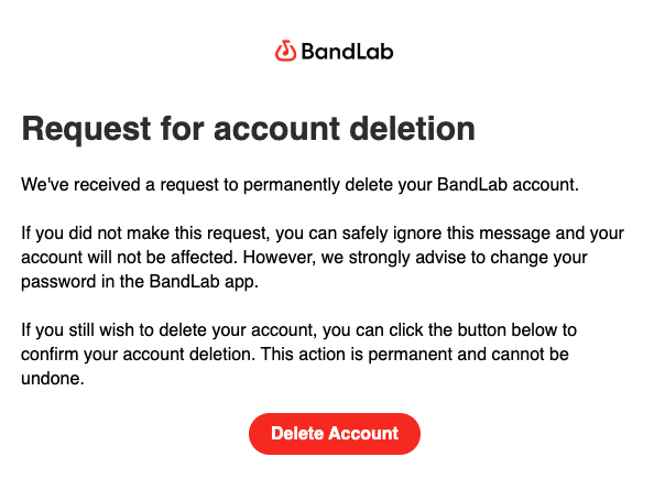 - This action is final and irreversible. Once you delete your account, it cannot be recovered by BandLab.
