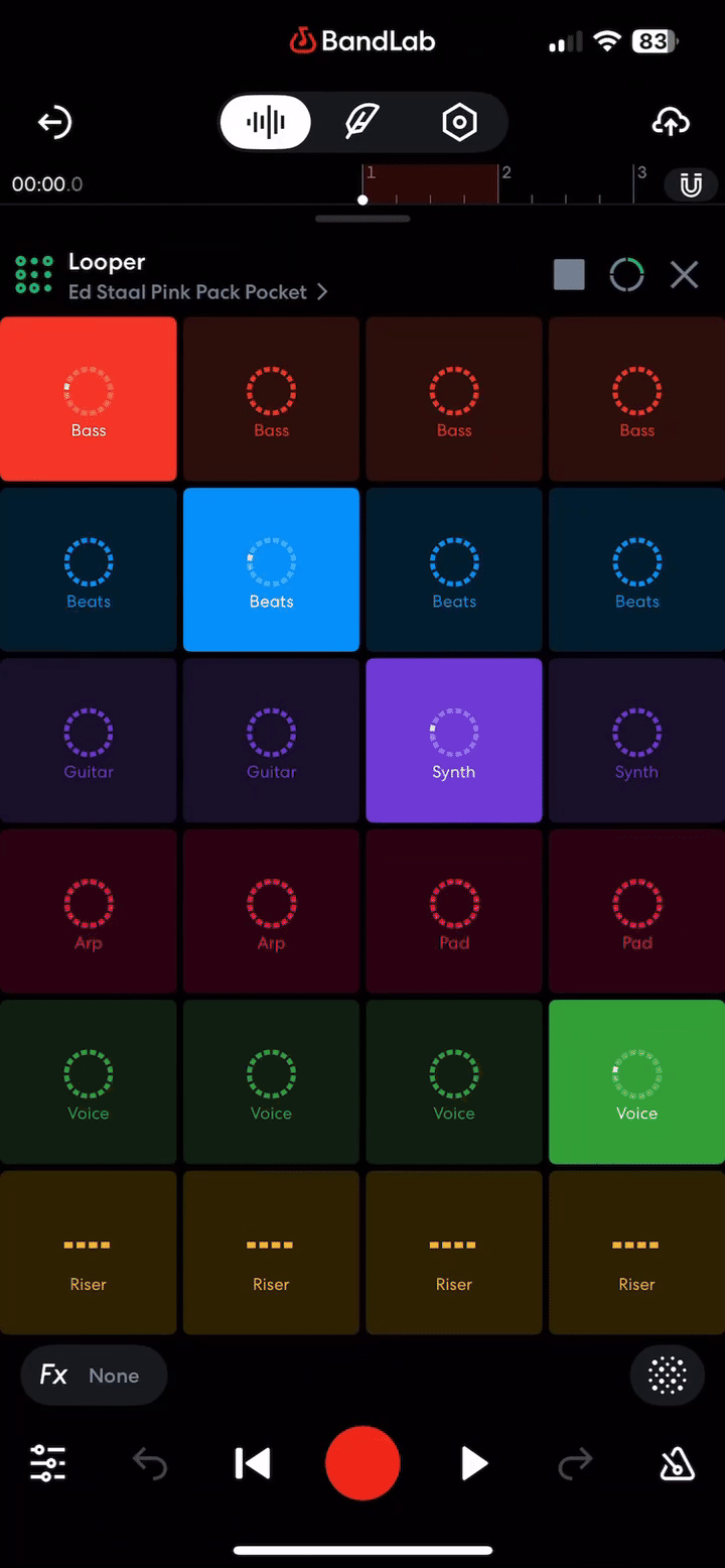 Looper allows you to trigger pre-made Loop Packs provided on BandLab. It's currently only available on the BandLab iOS and Android Mobile apps.