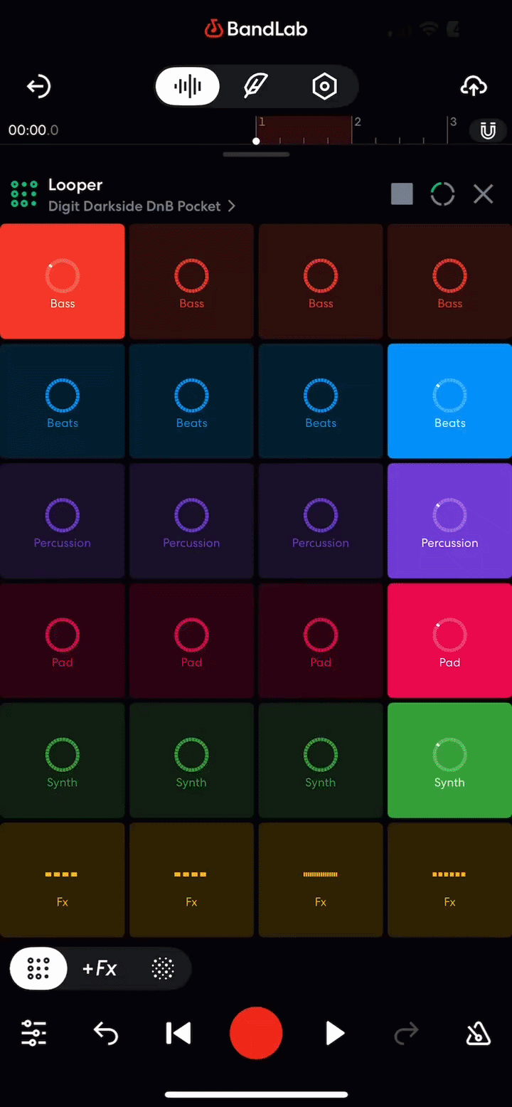 Looper lets you trigger pre-made Loop Packs available on BandLab. It's currently only available on the BandLab iOS and Android Mobile apps.