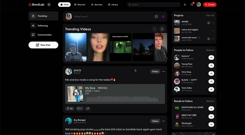- From the BandLab home page, click