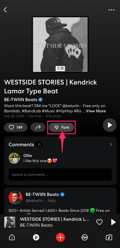 Forking in BandLab allows users to work on forkable songs and projects published by other users. This gives artists the opportunity to pick up where the original artist left off.