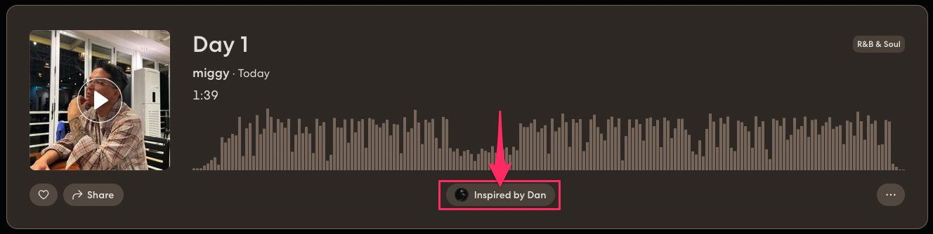 Songs you can fork are identifiable by the Fork icon . You can find many forkable songs on the Discover page or in your Following Feed.