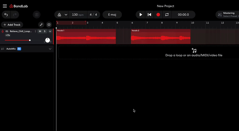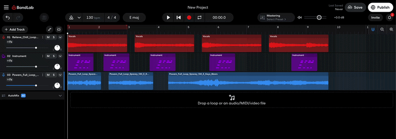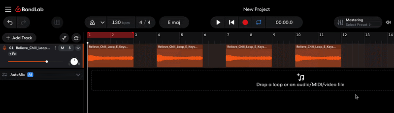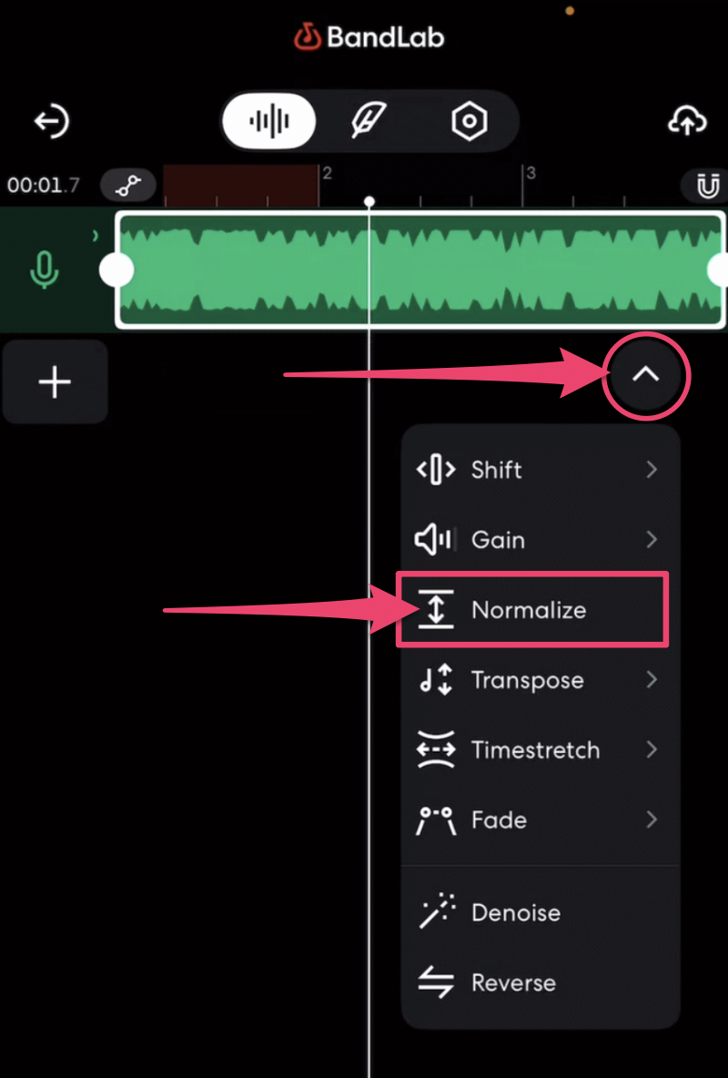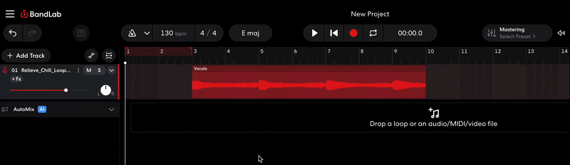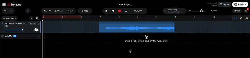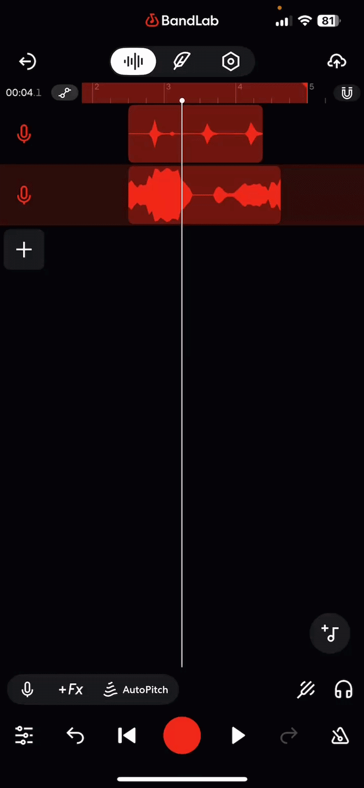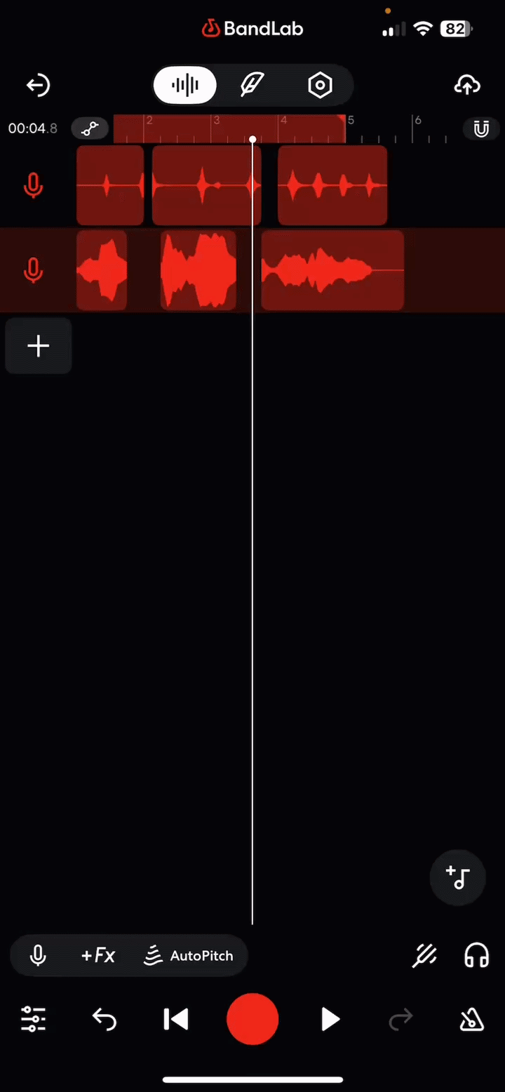 Whether you import an audio file, add a BandLab Sounds sample, or record something in the Studio, each audio region can be edited independently. There are a number of tools in the Studio that you can use to achieve various results depending on your needs.