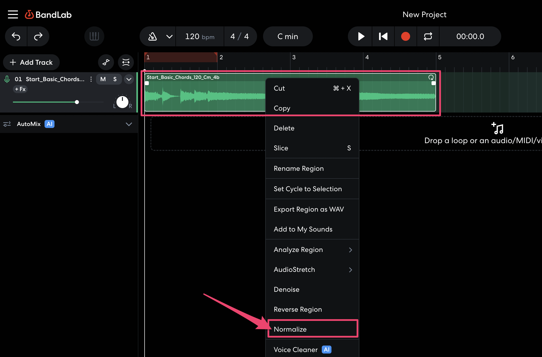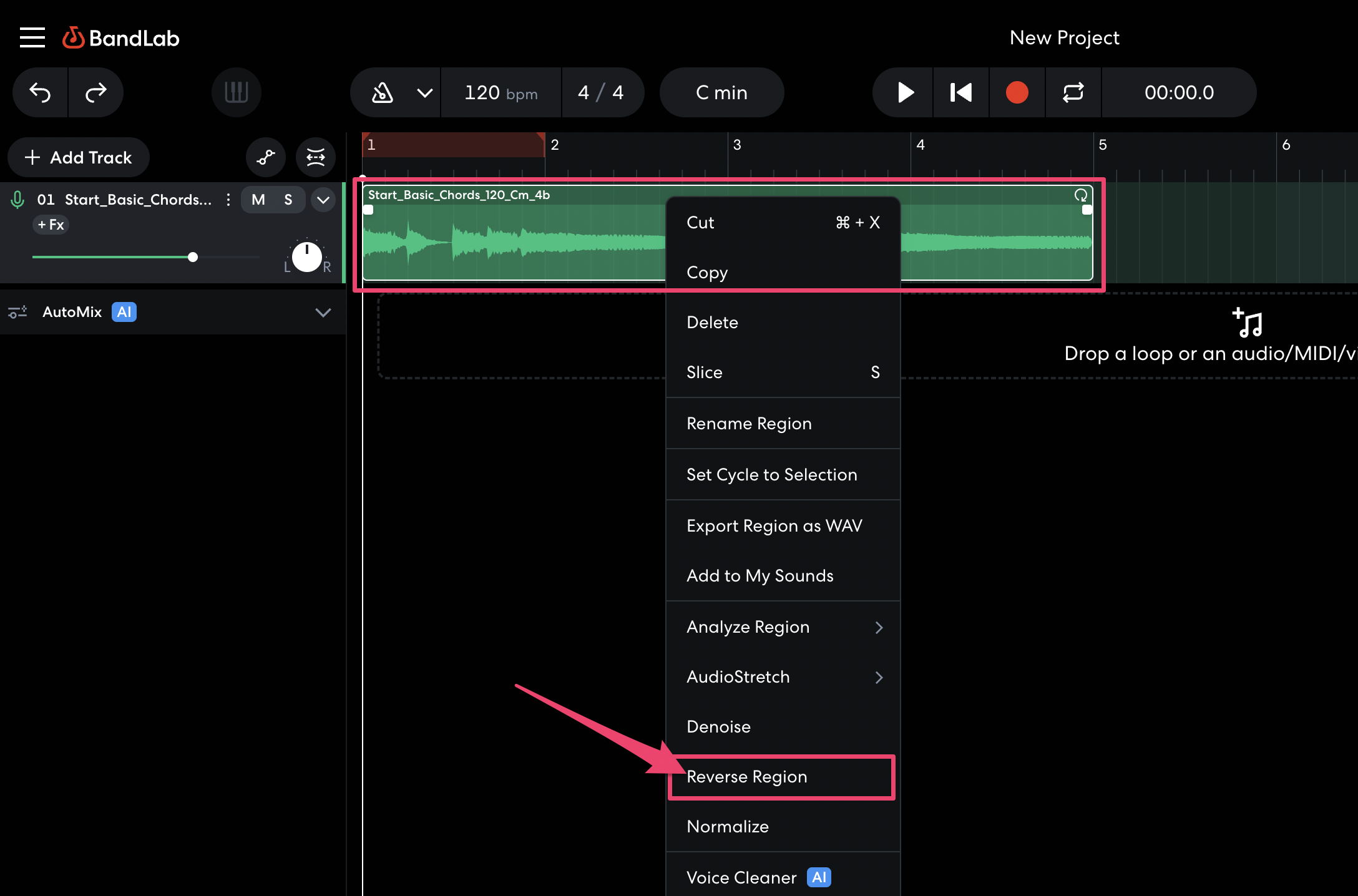 - Right-click on the selected region(s) and select Copy or press Ctrl/Cmd + C on your keyboard. You can also select Cut or press Ctrl/Cmd + X on your keyboard